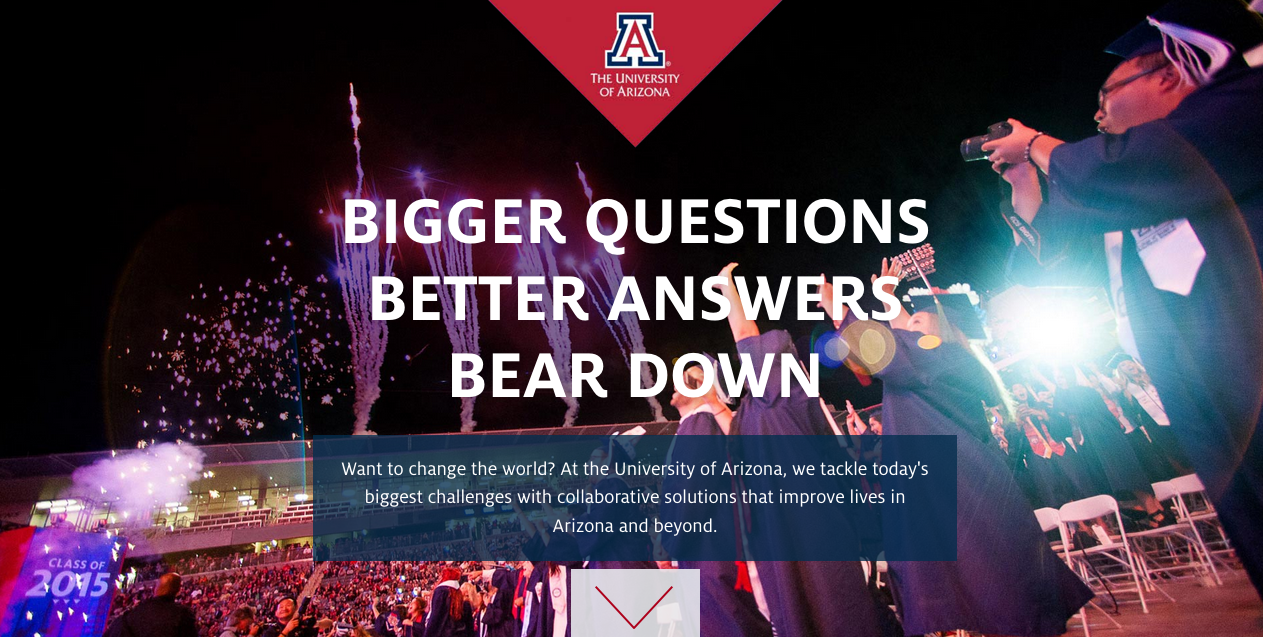 When U of A launched its new branding in 2014, it was accompanied by a new tagline: Bigger Questions. Better Answers. Bear Down. With this new motto came the desire to tell how university students and staff are pushing boundaries, looking for innovative solutions to some of the world’s biggest problems. Casual Astronaut designed a content-focused microsite to serve as the hub of an ongoing storytelling campaign that targets multiple audiences, including faculty and staff, alumni, media, business leaders and other influencers. The content is distributed through social media, digital ads and more.