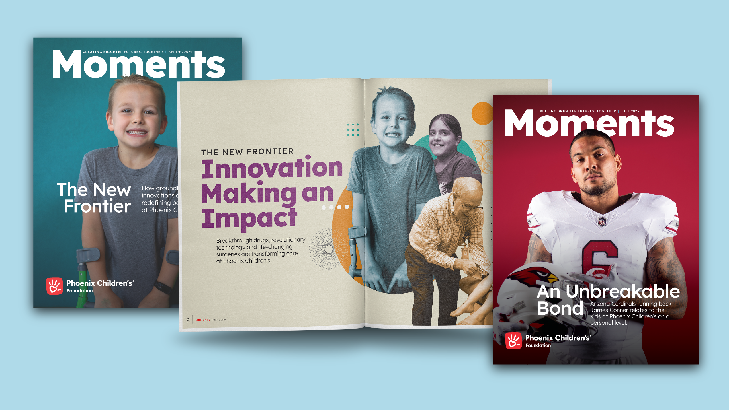 Think of the number of emails you get each day. Now, how many engaging pieces of mail do you get? Chances are not many, but you remember them when you pull them out of your mailbox. Take, for example, Moments, the biannual publication we reimagined for Phoenix Children’s. Adorable kids, an attractive design, magazine-style architecture: This publication turns heads (and drives brand awareness) for all the right reasons that print marketing campaigns do right. Print stands out in a sea of digital noise, making it more likely to capture and hold your audience’s attention.